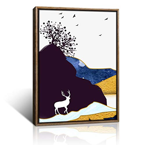 Gardenia Art Abstract Deer in The Valley Modern Wall Art Canvas Paintings Artwork for Living Room Bedroom Office Decor,12X16 inch,1 Panel, Framed