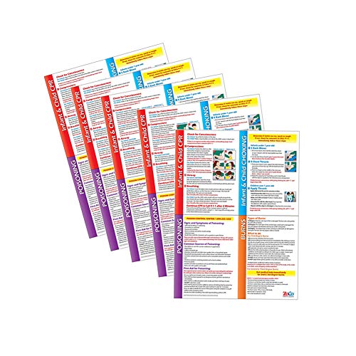 5 Pack: Child and Infant CPR Posters - Choking Posters - Poison and Burns First Aid Signs - Baby CPR Instructions - Heimlich Maneuver Charts - 17 x 22 Inches