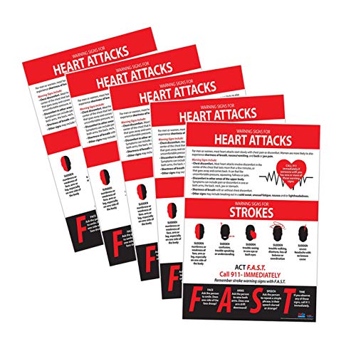 5 Pack: Heart Attack & Stroke Warning Signs - Educational Safety Poster - 17 x 22 in. - Laminated