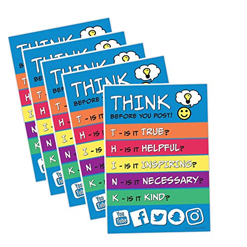 5 Pack: Think Before You Post - Bullying Prevention Inspirational Classroom Poster - 12 x 18 in. - Laminated