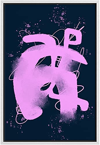 Framed Canvas Print Wall Art Purple Abstract Spray Paint Symbol Graffiti & Street Art Shapes Digital Art Modern Art Fun Multicolor Ultra for Living Room, Bedroom, Office - 24"x36" White