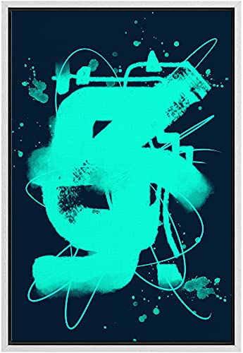 Framed Canvas Print Wall Art Teal Abstract Spray Paint Symbol Graffiti & Street Art Shapes Digital Art Modern Art Fun Multicolor Ultra for Living Room, Bedroom, Office - 16"x24" White