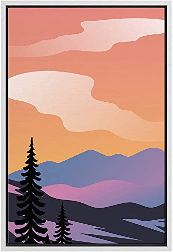 Framed Canvas Print Wall Art Mountains at Sunset Geometric Shapes Illustrations Modern Art Rustic Portrait Relax/Calm Multicolor Ultra for Living Room, Bedroom, Office - 16"x24" White