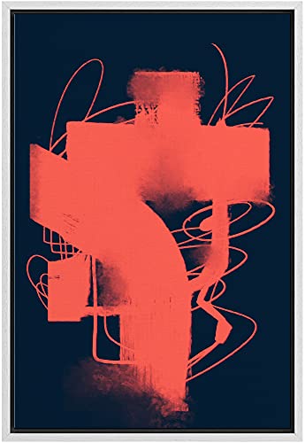 Framed Canvas Print Wall Art Red Abstract Spray Paint Symbol Graffiti & Street Art Shapes Digital Art Modern Art Fun Multicolor Ultra for Living Room, Bedroom, Office - 16"x24" White