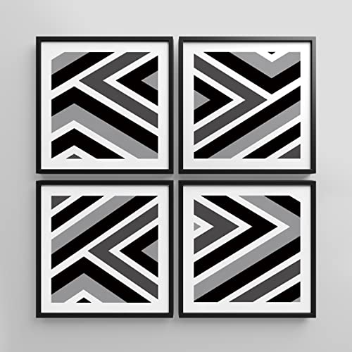 Ashbrook Framed Wall Art Collage Print Gallery Set Optical Illusion Stripes Geometric Line Digital Art Abstract Mid-Century Modern Black White for Living Room, Bedroom, Office