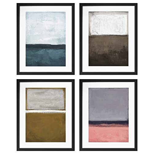 Ashbrook Framed Wall Art Collage Print Gallery Set Grunge Watercolor Block Landscapes Abstract Shapes Illustrations Modern Decorative Multicolor for Living Room, Bedroom, Office