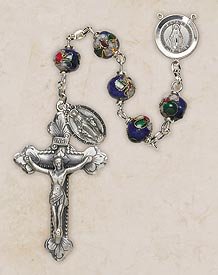 Blue Cloisonné Rosary 8MM Blue Bead 1 3/4" Crucifix