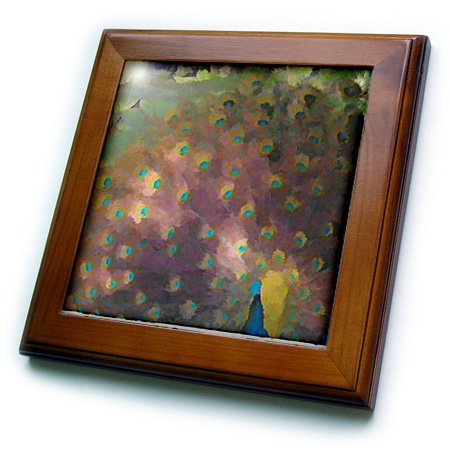 3dRose ft_26164_1 Turquoise Peacock Art Framed Tile, 8 by 8-Inch