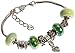 Mother's Charm Bracelet with Removable Pandora Compatible Italian Murano Glass Beads for Moms in Chameleon Green, 7" + 1" Extender