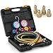 ARKSEN 4Valve Manifold Gauge, Hi/Low Adapters, Brass HVAC A/C, w/Carrying Case Black
