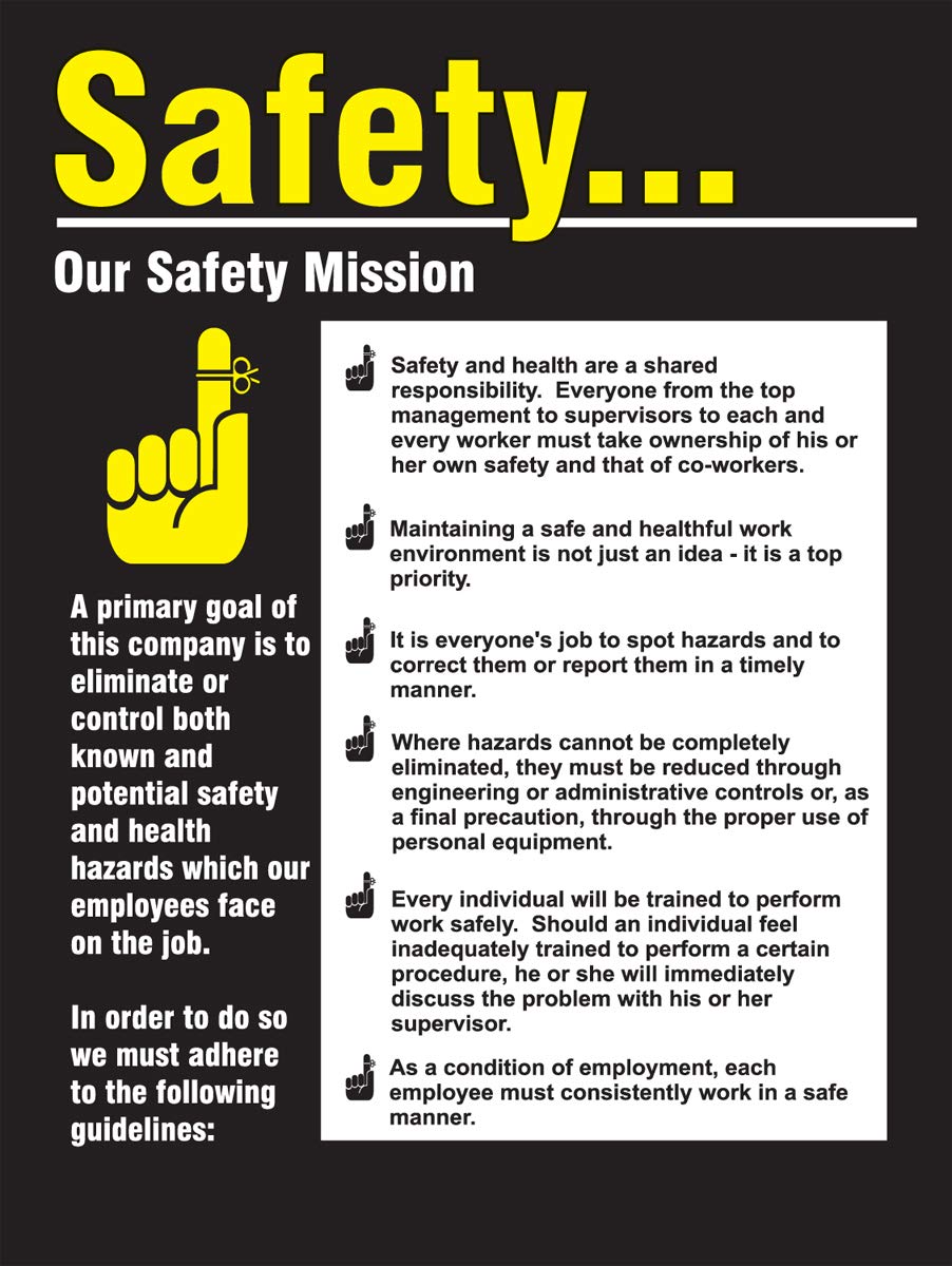 Safety Posters:"Our Safety Mission" Laminated Poster, 22" x 17"