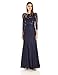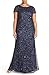Adrianna Papell Women's Plus-Size Scoop-Back Long Beaded Gown, Navy/Gunmetal, 14W
