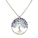 AeraVida Purple Fluorite Green Quartz Stone Eternal Tree of Life Brass Necklace