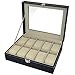 Aketek Watch Box 10 Mens Black Leather Display Glass Top Jewelry Case Organizer