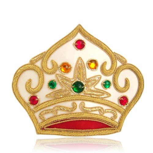 Alef Judaica Iron On Crown Shaped Emblem - Gold Trimmed Embroidery and Colorful Beads 2 Pieces Per Unit