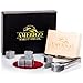 Luxury Whiskey Stones Gift Set - Set of 9 Whiskey Rocks - Reusable Ice Cubes for Drinks - Great Whiskey Gift for Man - Handcrafted Whisky Stones Set - Chilling Stones + Ice Tongs + 2 Classy Coasters