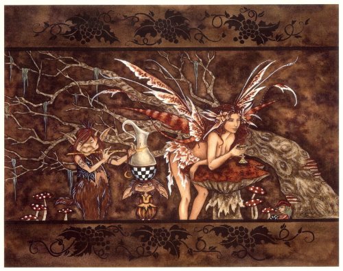 Wine Dance Amy Brown Mini Lithograph Print 4.25" X 5.5" Fairy Faery