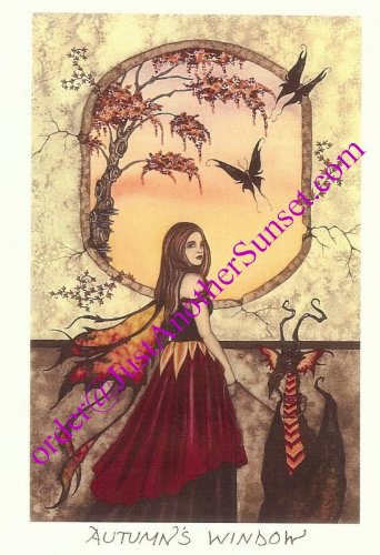 Amy Brown Print 5.5" X 8.5" Fairy Faery Autumn's Window Dragon