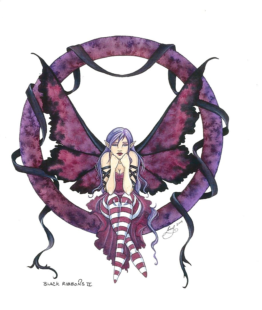 Black Ribbons II Amy Brown Mini Lithograph Print 4.25" X 5.5" Fairy Faery