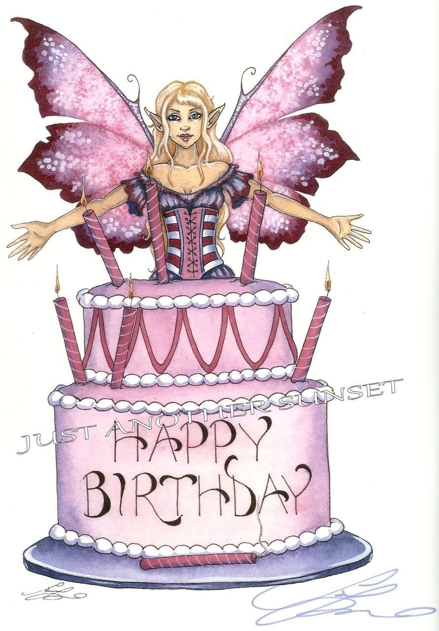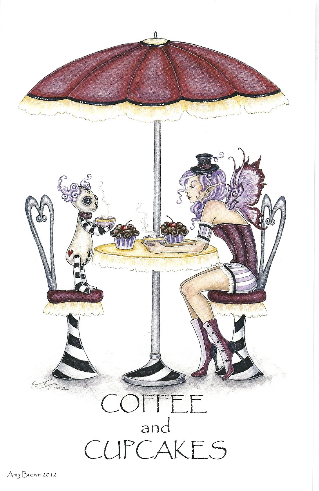 Amy Brown Print 5.5" X 8.5" Fairy Faery Coffee and Cupcakes