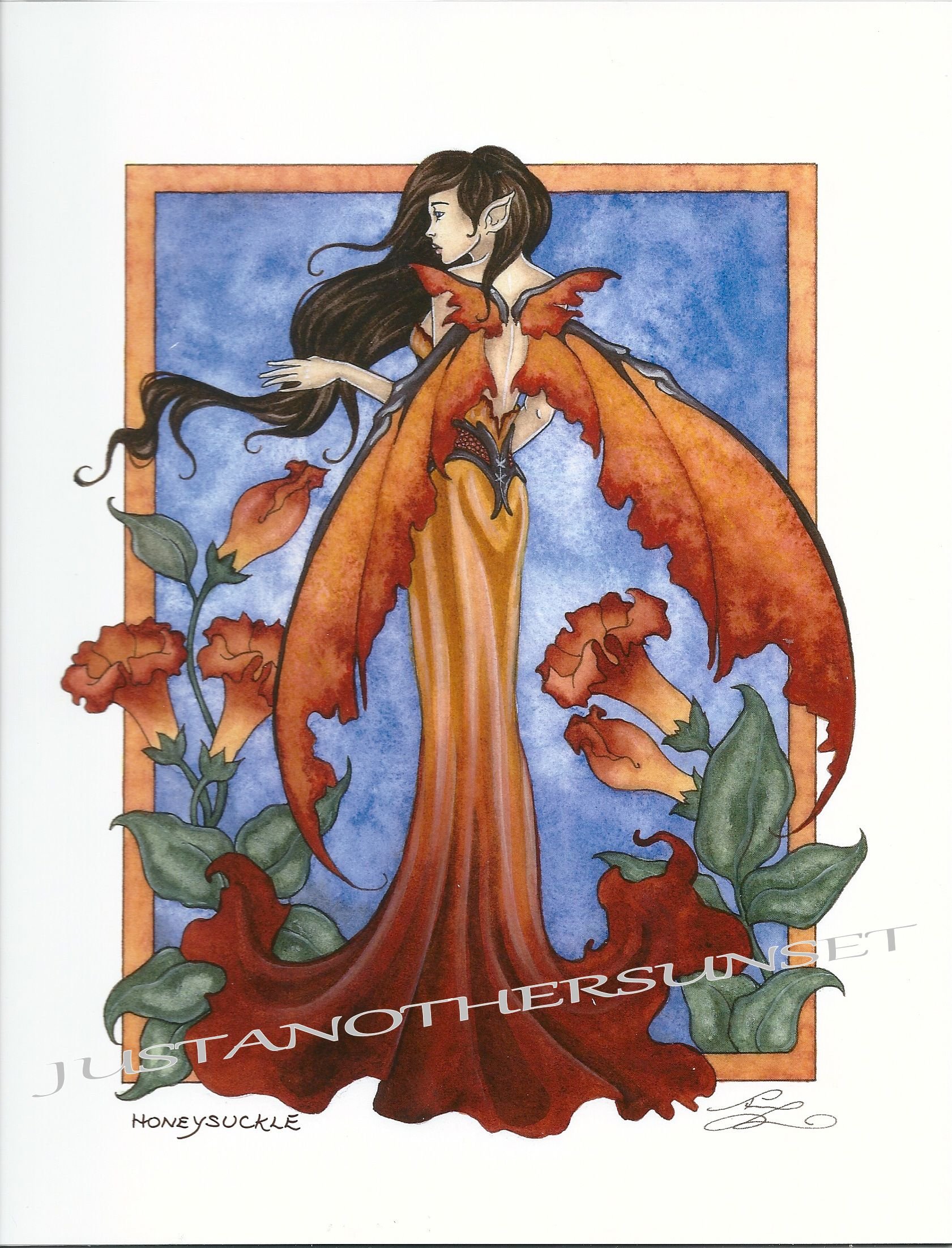 Honeysuckle Flower Amy Brown Amy Brown Mini Lithograph Print 4.25" X 5.5" Fairy Faery