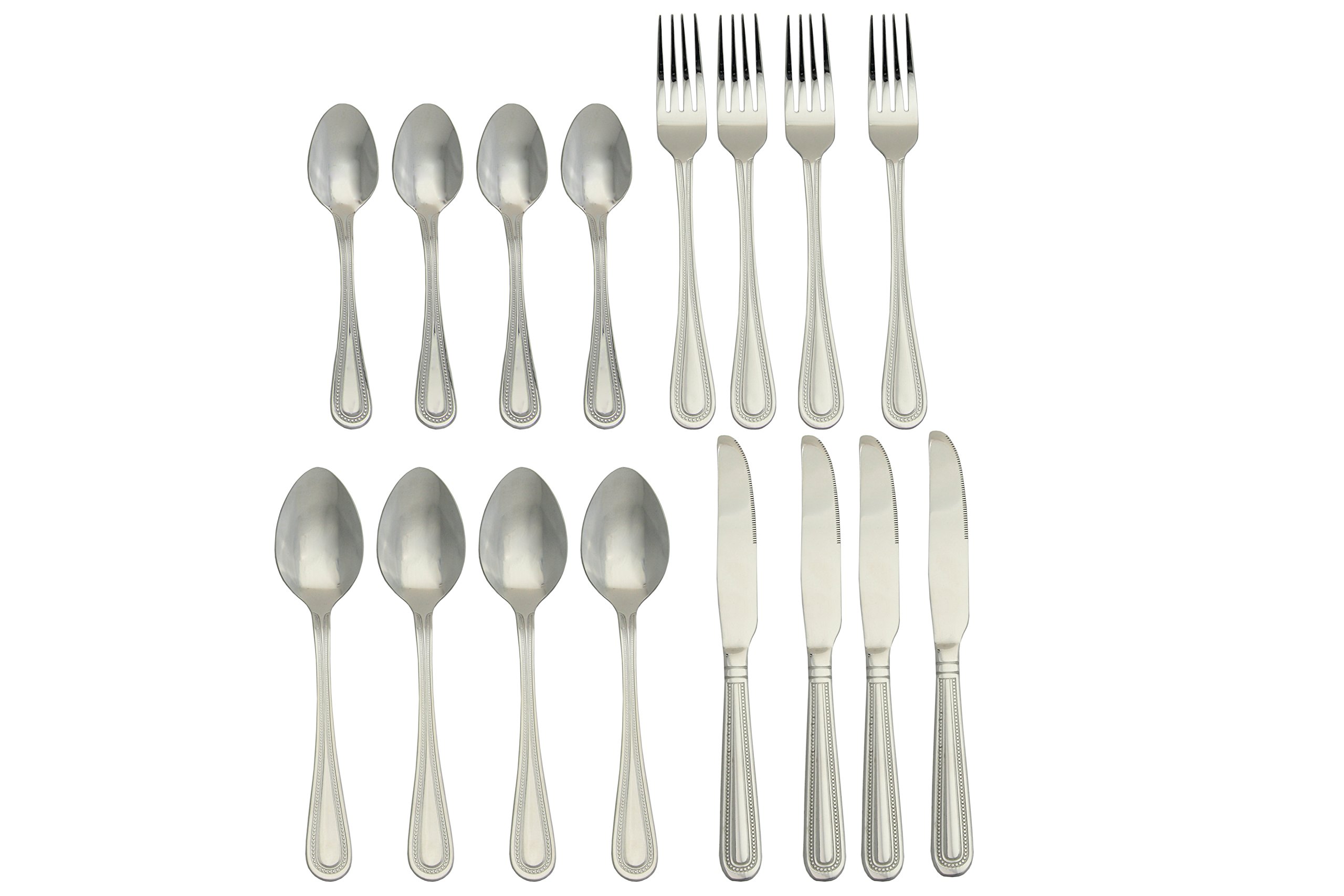 APOLLO 16-Piece Cutlery Set with Bead Design, 27 x 18 x 7 cm, Silver
