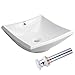 Aquaterior Square White Porcelain Ceramic Bathroom Vessel Sink Bowl Basin with Chrome Drain 16-1/7"x16-1/7"x4-1/3"H