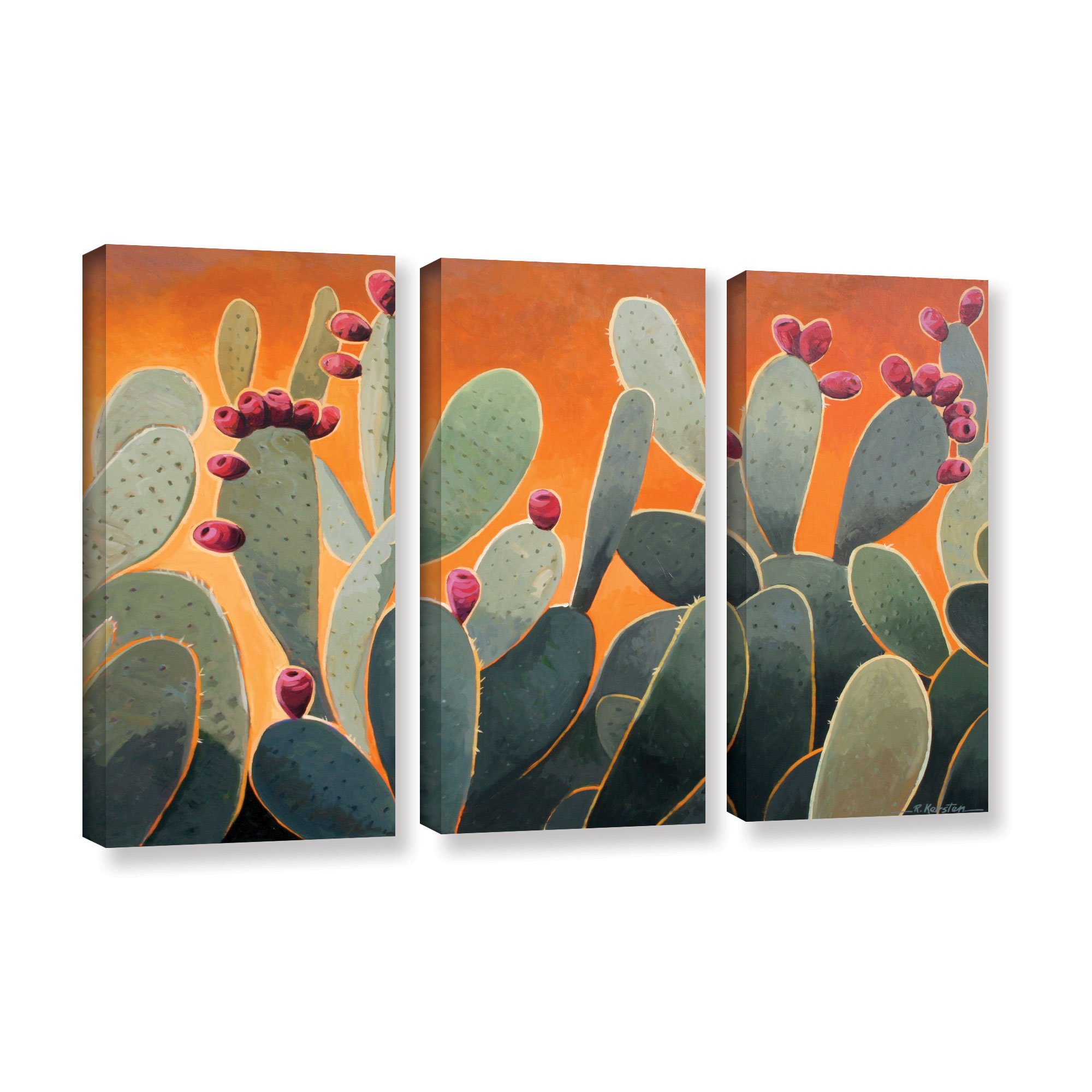 ArtWall 3-Piece Interpretation in Red Almond Blossom Gallery Wrapped Canvas Art by Vincent Van Gogh, 36 by 24-Inch