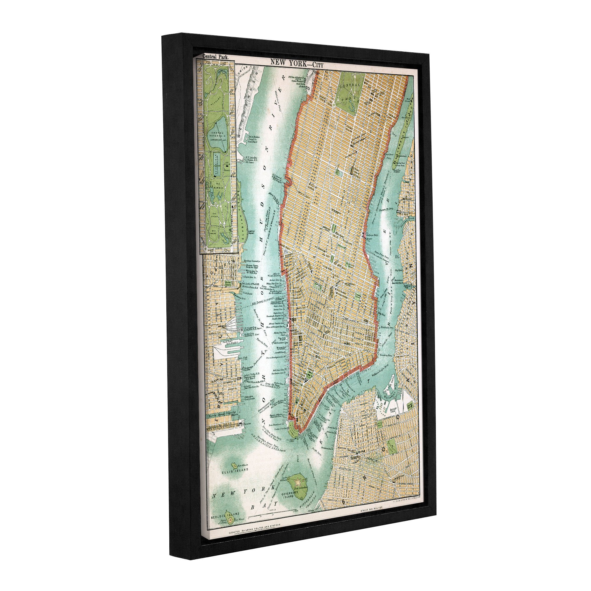 ArtWall 1ame014a1624f American School's Antique Map of Lower Manhattan and Central Park,1892" Gallery Wrapped Floater Framed Canvas Art, 16" by 24"