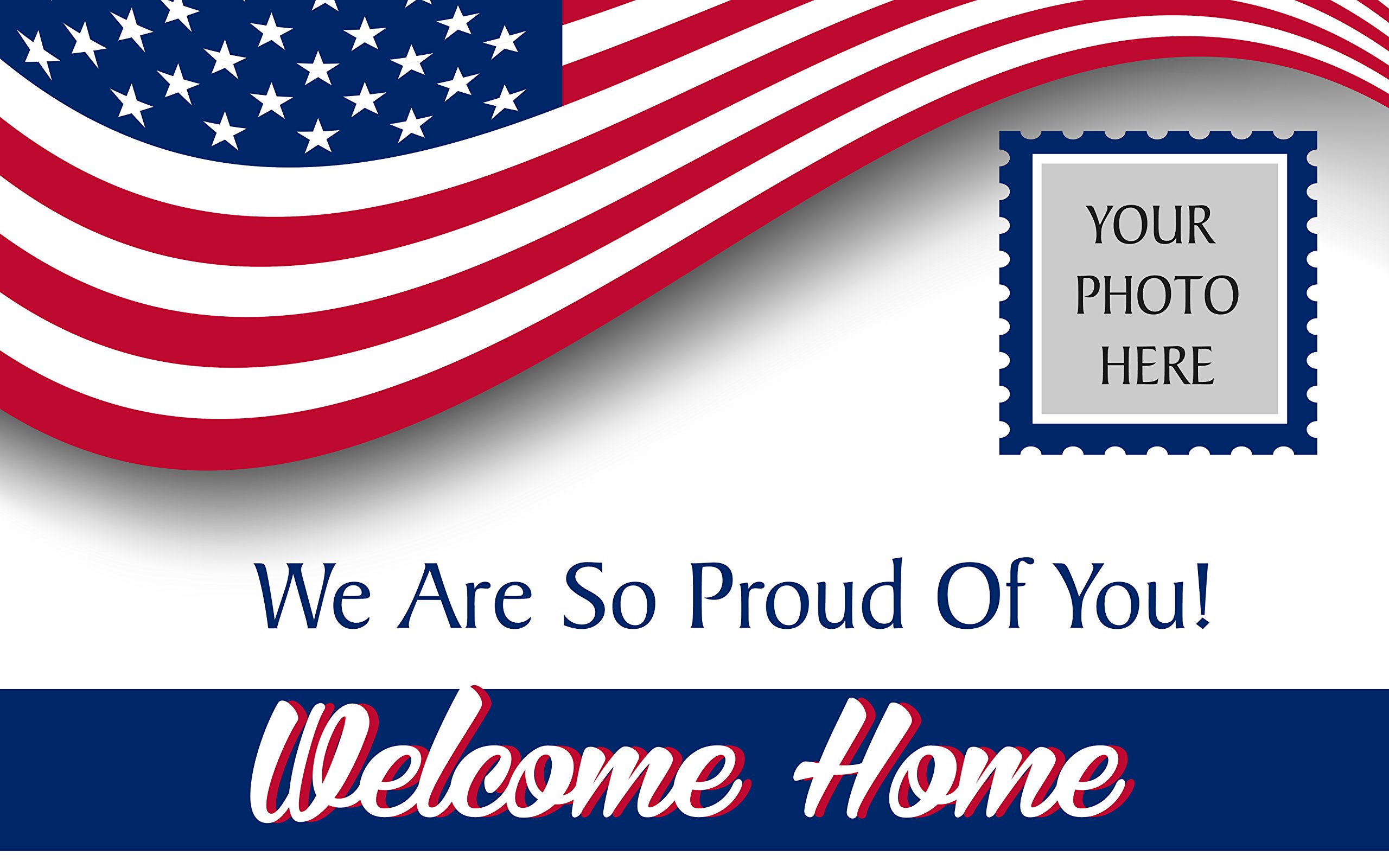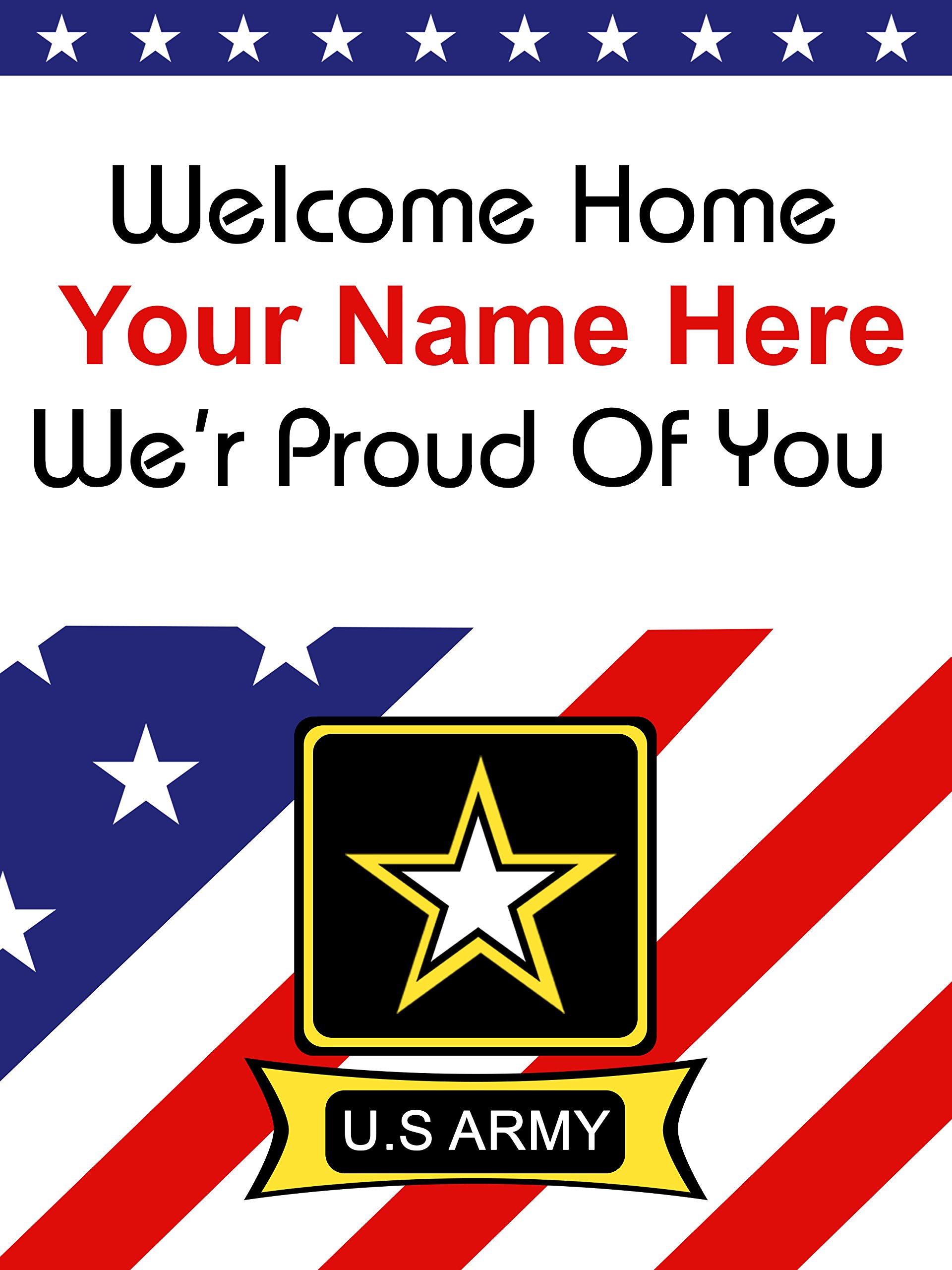 Welcome Home We are so Proud of You US Basic Military Personalize Photo Banner 3' X 5' ft with Hemmed Edges & Metal Grommets Free