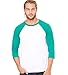 Bella 3200 Unisex 3 By 4 Sleeve Baseball Tee - White & Kelly, Medium