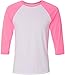 Bella 3200 Unisex 3 By 4 Sleeve Baseball Tee - White & Neon Pink44; Large