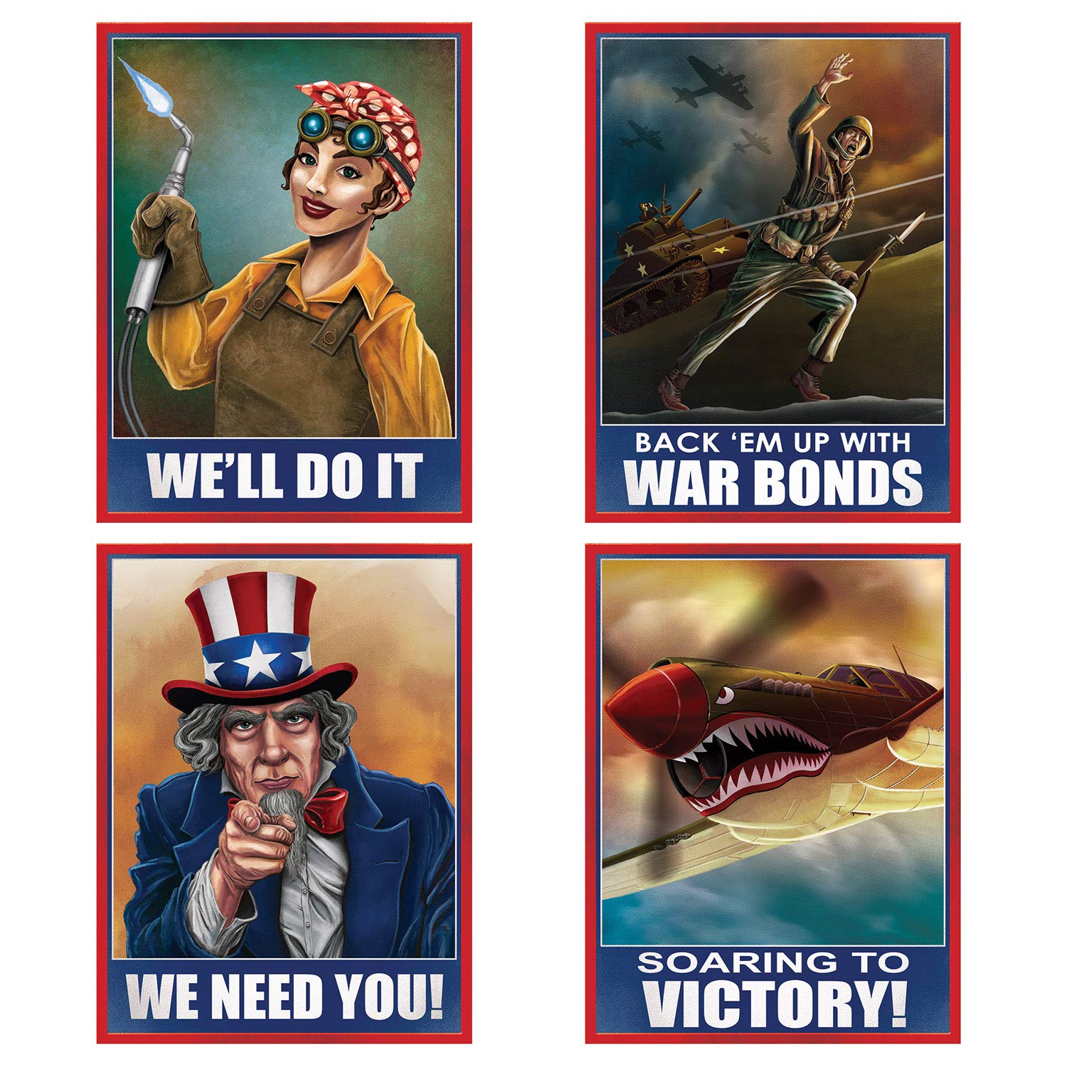 Beistle 53586 World War II Poster Cutouts, 8 Piece, 15.25" Multicolored