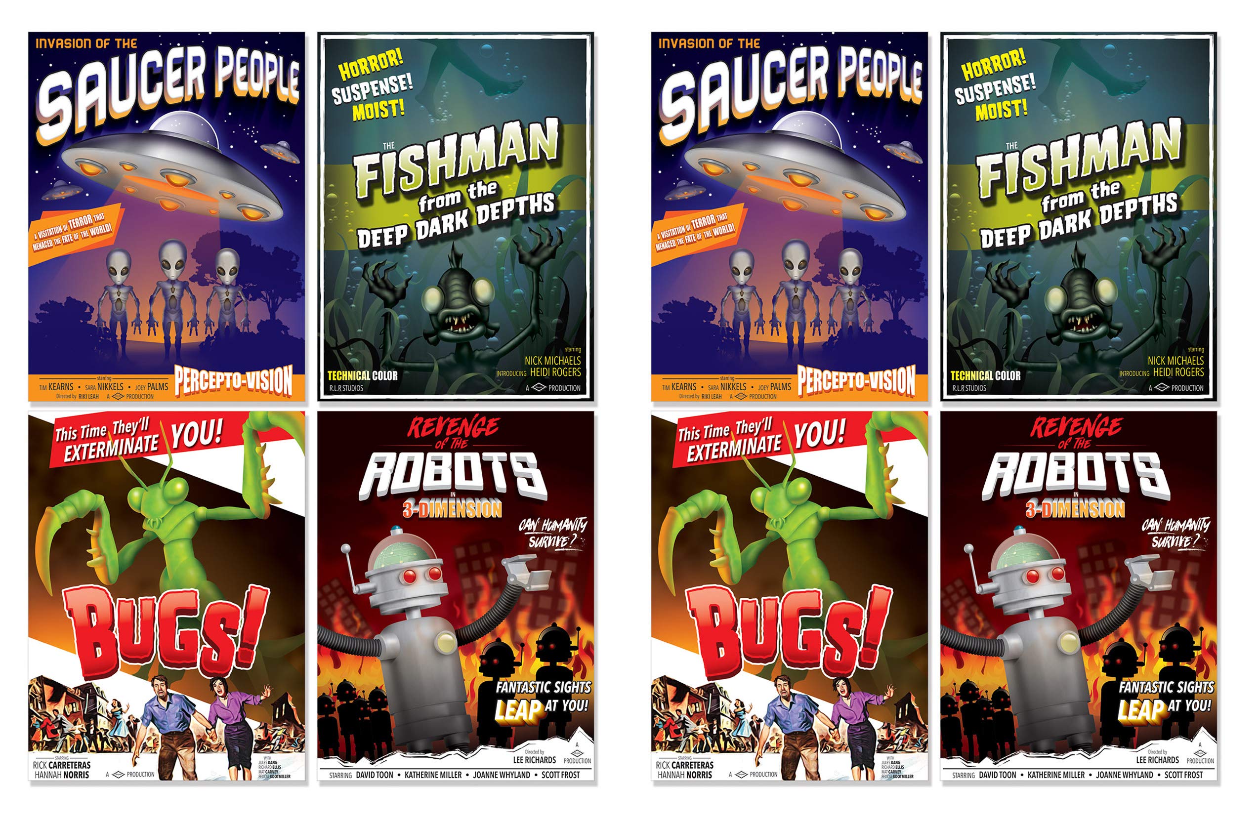 Beistle B-Movie Drive-In Poster Cut Outs 8 Piece Outer Space Decorations 50's Party Supplies, 15.25", Multicolored