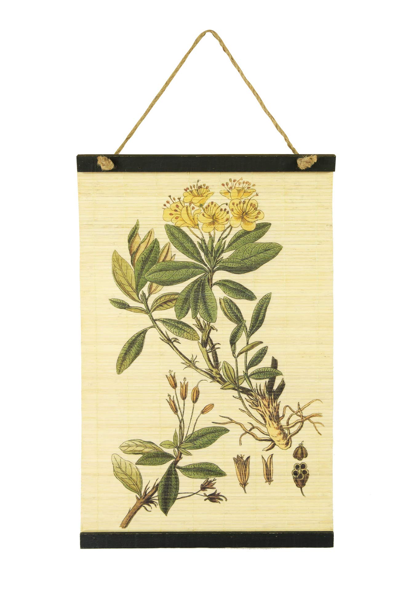 Bloomingville Floral Print 24.5" H Bamboo Scroll Décor Wall Decor, Green