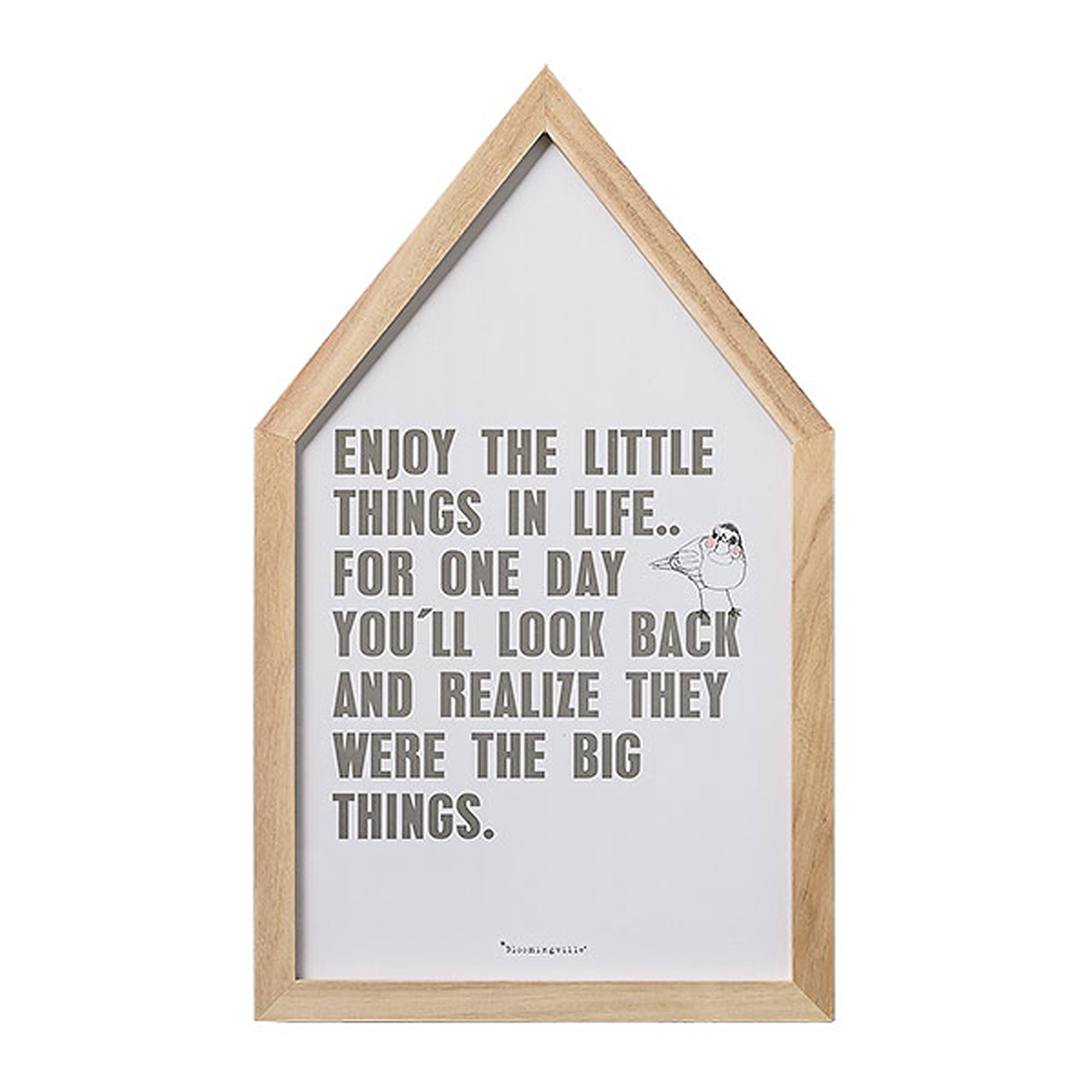 Bloomingville Wood Framed House Shaped Enjoy The Little Things Wall Decor, White