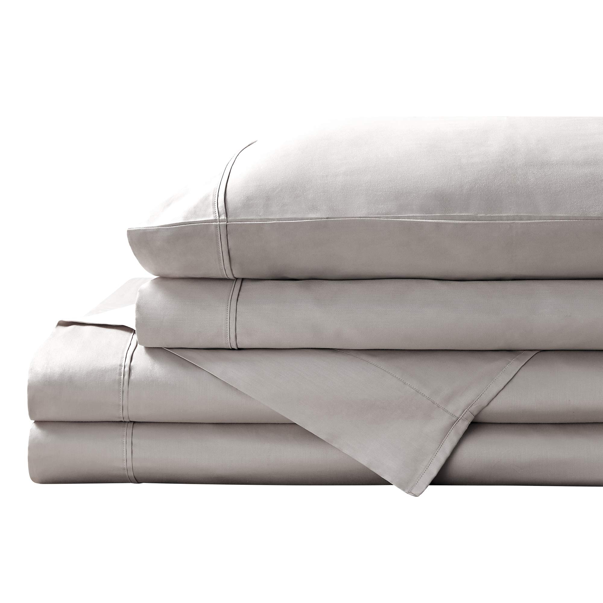 Brielle 300 Thread Count Solid 100% Cotton Sateen Sheet Set, Twin, Silver
