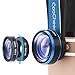 Coocheer Fisheye Camera Lens 198 Degree Clip 15x Macro Lens & 0.63x Wide Angle Lens 3 in 1 Kit Clip-On Cell Phone Camera Lenses for iPhone, Android,Tablets,Laptops-Blue