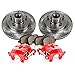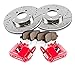 FRONT Powder Coated Red [2] Calipers + [2] Rotors + Quiet Low Dust [4] Ceramic Pads Performance Kit