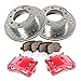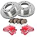 FRONT + Solid REAR [4] Rotors + [4] Powder Coated Red Calipers + Quiet Low Dust [8] Ceramic Pads Performance Kit
