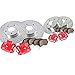 FRONT + REAR Powder Coated Red [4] Calipers + [4] Rotors + Quiet Low Dust [8] Ceramic Pads Performance Kit