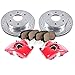 REAR Powder Coated Red [2] Calipers + [2] Rotors + Quiet Low Dust [4] Ceramic Pads Performance Kit