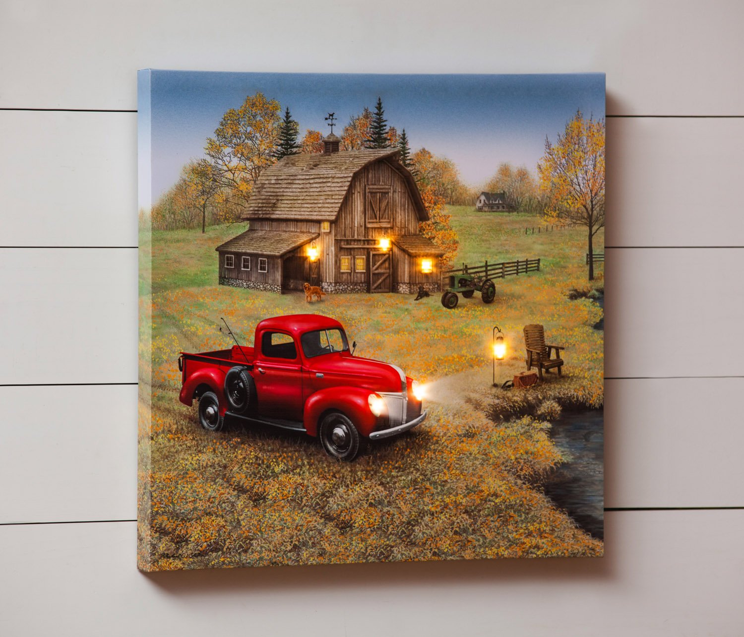 Cape Craftsmen Red Farm Truck LED Canvas - 20 x 2 x 20 Inches