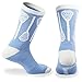 ChalkTalk SPORTS Athletic Half Cushioned Lacrosse Crew Socks | Mid Calf | Vertical Sticks Crew Socks | Light Blue/White