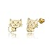 14k Gold Plated Brass Cat Cubic Zirconia Screwback Baby Girls Earrings with Sterling Silver Post