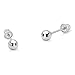 925 Sterling Silver Rhodium Plated 3-6mm Plain Hollow Silver Ball Screwback Baby Girls Earrings