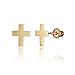 14k Gold Plated Brass Plain Cross Screwback Baby Girls Earrings with Sterling Silver Post