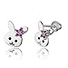 925 Sterling Silver Rhodium Plated Rabbit Cubic Zirconia Screwback Baby Girls Earrings