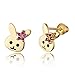 14k Gold Plated Brass Rabbit Cubic Zirconia Screwback Baby Girls Earrings with Sterling Silver Post