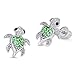 925 Sterling Silver Rhodium Plated Green Turtle Cubic Zirconia Screwback Baby Girls Earrings
